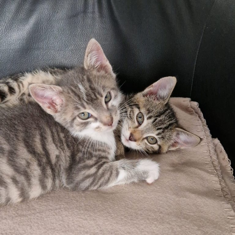Jetzt sind sie zu zwei fröhlichen, aufgeweckten Jungs herangewachsen – neugierig, verspielt und immer für ein kleines Abenteuer zu haben. Gleichzeitig sind sie richtig verschmust und suchen gern die Nähe ihrer Menschen.